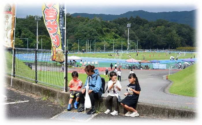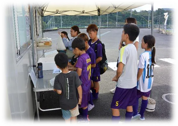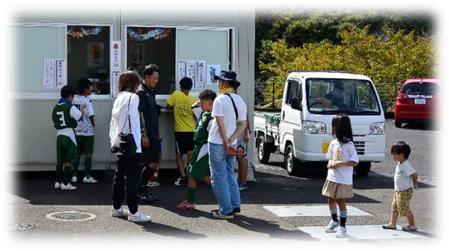 9月23日、10月5日に少年サッカー大会、テニス練習試合などがあり、県内外から多くの子供達が汗を流しに来ましたので、農村交流センター横の仮設売店で軽飲食物の販売を行いました。